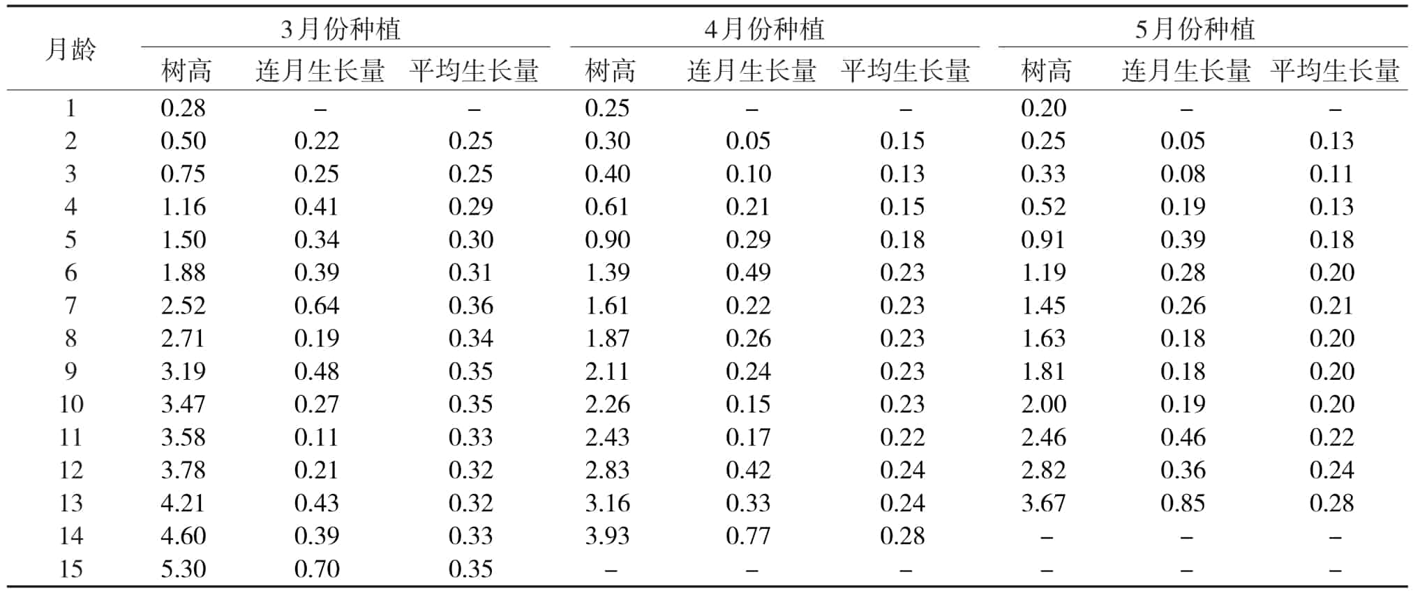 表3 不同种植时间大花序桉粉色APP导航官网入口苗林分树高生长