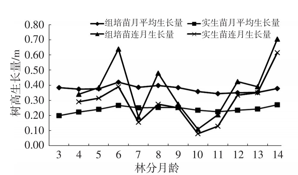 图1 不同林分月龄大花序桉粉色APP导航官网入口苗和实生苗树高生长量趋势