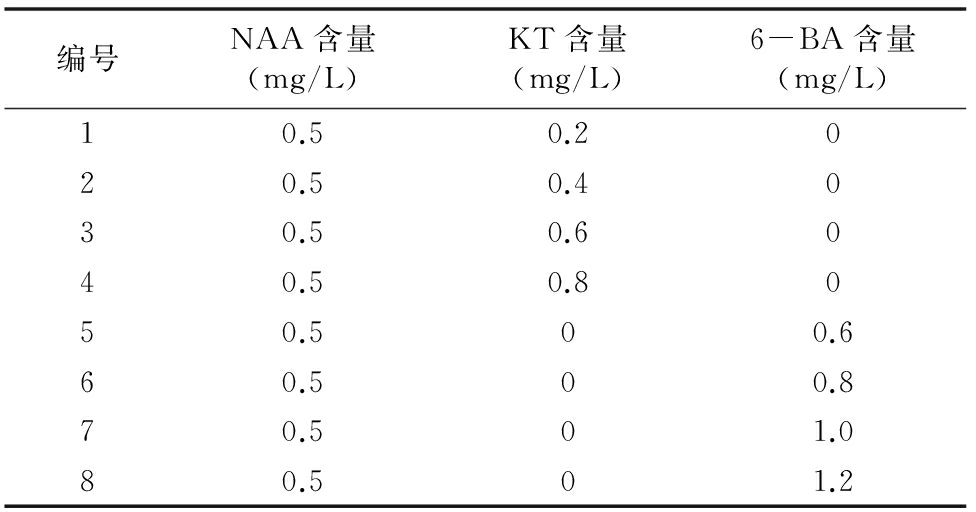 表2 继代培养基植物激素含量